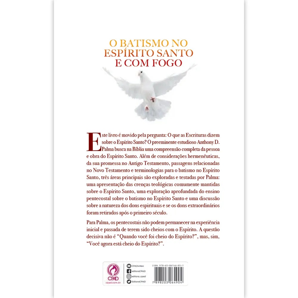 O Batismo no Espírito Santo e com Fogo apresenta a compreensão pentecostal sobre o batismo no Espírito Santo, firmemente enraizada nas Escrituras. O autor leva o leitor a uma análise cuidadosa das evidências bíblicas para o batismo no Espírito Santo, desde a promessa no Antigo Testamento até o cumprimento no Novo Testamento. Ao longo da obra, são tratados temas centrais como a relação do batismo no Espírito com a salvação, sua sequência e significado, e seu propósito para a vida cristã contemporânea. A obra tem abordagem clara e objetiva e reafirma que os crentes de hoje possuem o mesmo privilégio que os cristãos do Novo Testamento de serem batizados no Espírito Santo.