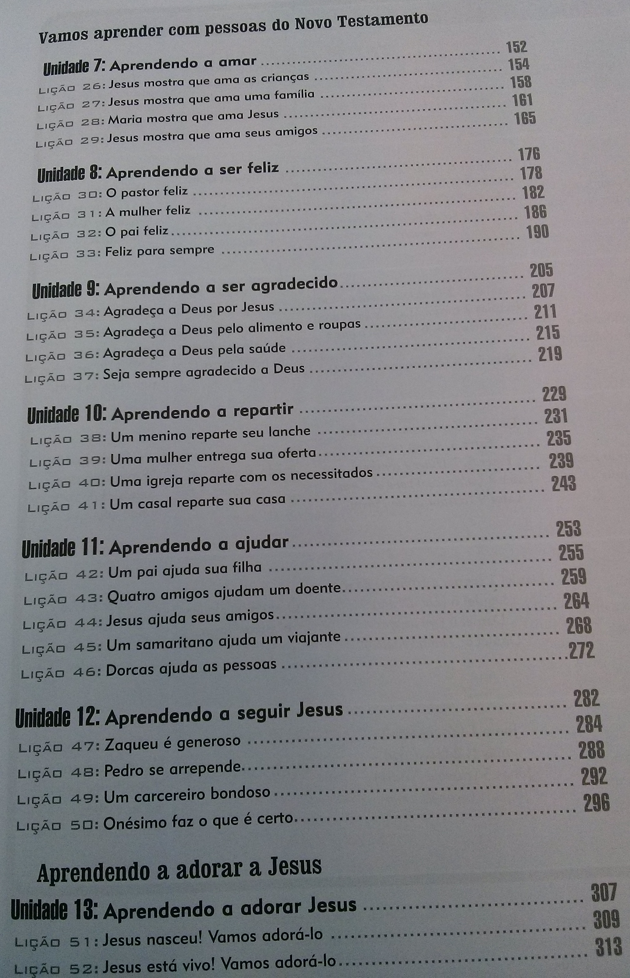 As lições são desenvolvidas para que as crianças trabalhem com todos os sentidos (por exemplo, visão e tato (trabalhos manuais), paladar e olfato (lanches especiais) e audição (músicas). Assim, cada lição é abordada de todos os ângulos para que as crianças estejam completamente envolvidas, tornando mais fácil o aprendizado.